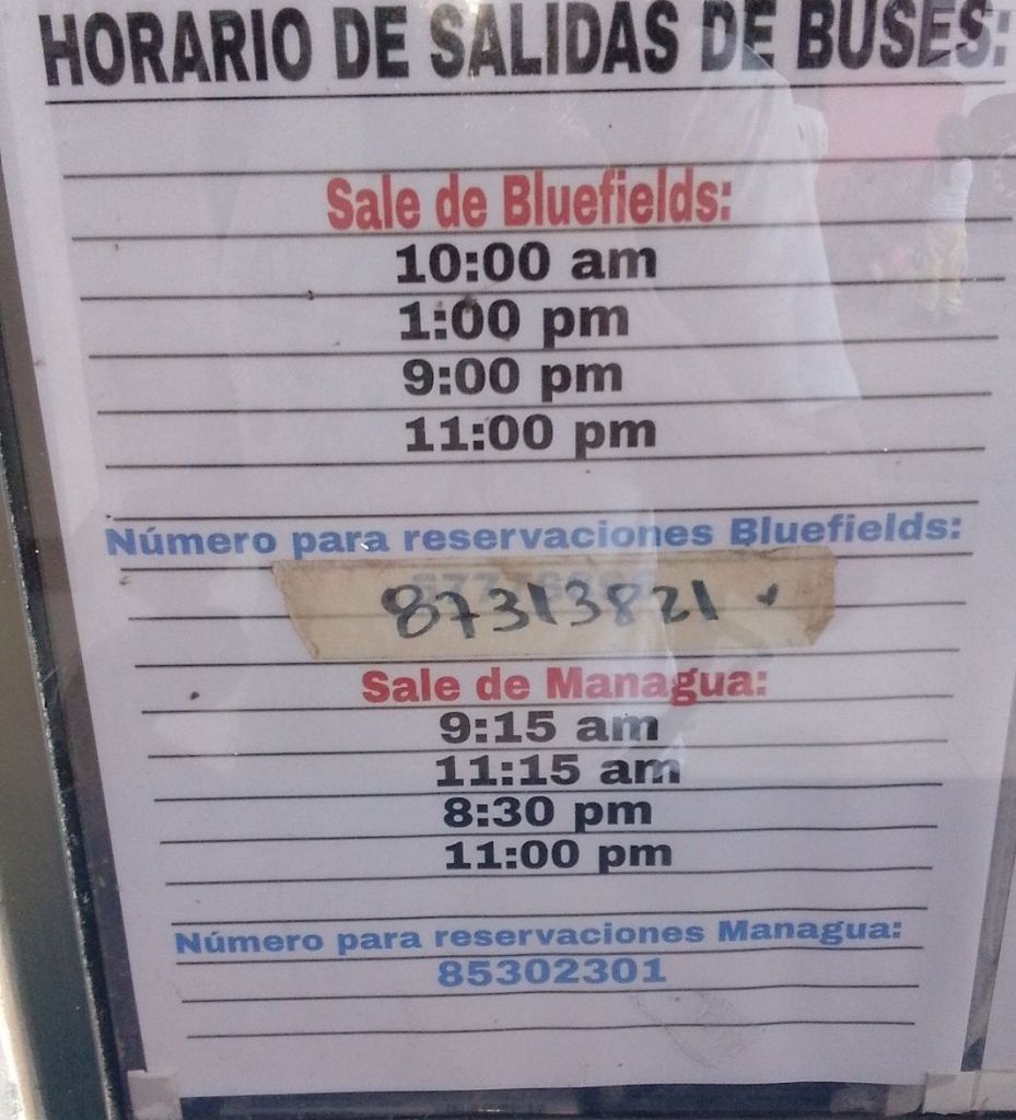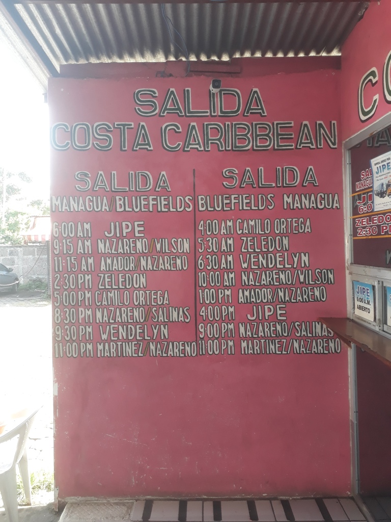 Bus Nueva Guinea – Bluefields – 3.5 hours – cost 6$