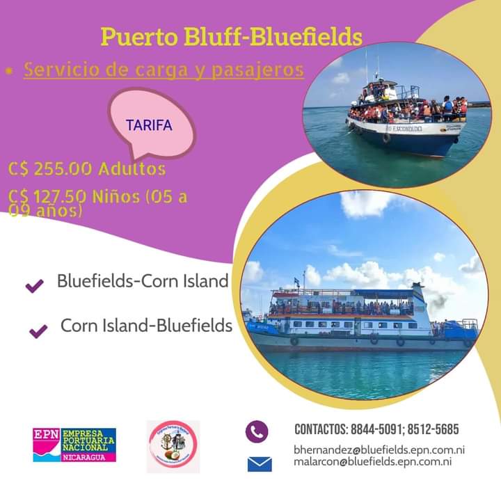 Check ferry boat news and updates on their Facebook page,. EPN Bluefields. When weather is bad, the ferry don’t travel.