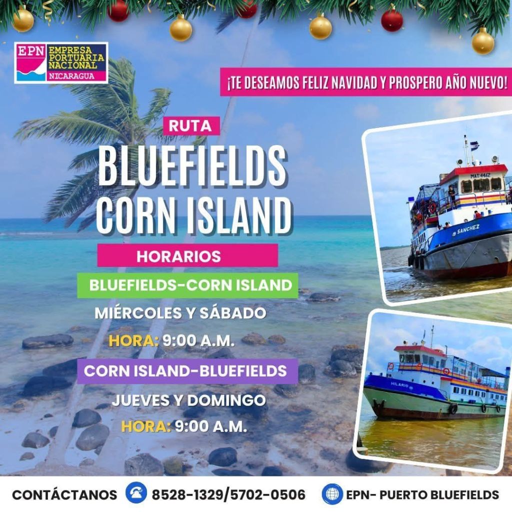 Boat schedule from Bluefields to Corn Island, Wednesday and saturday: 9 am