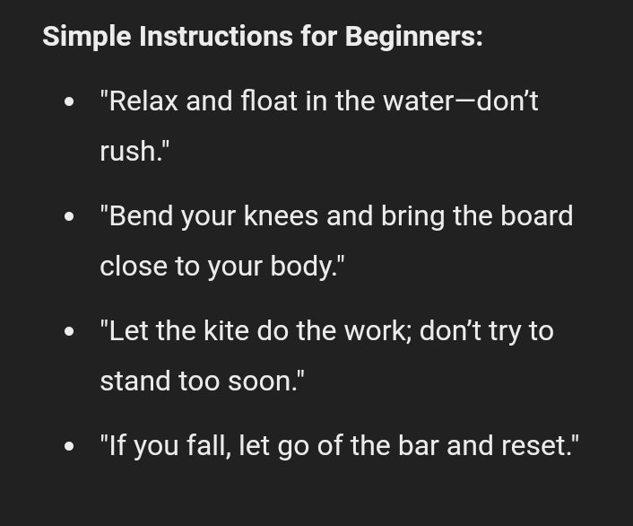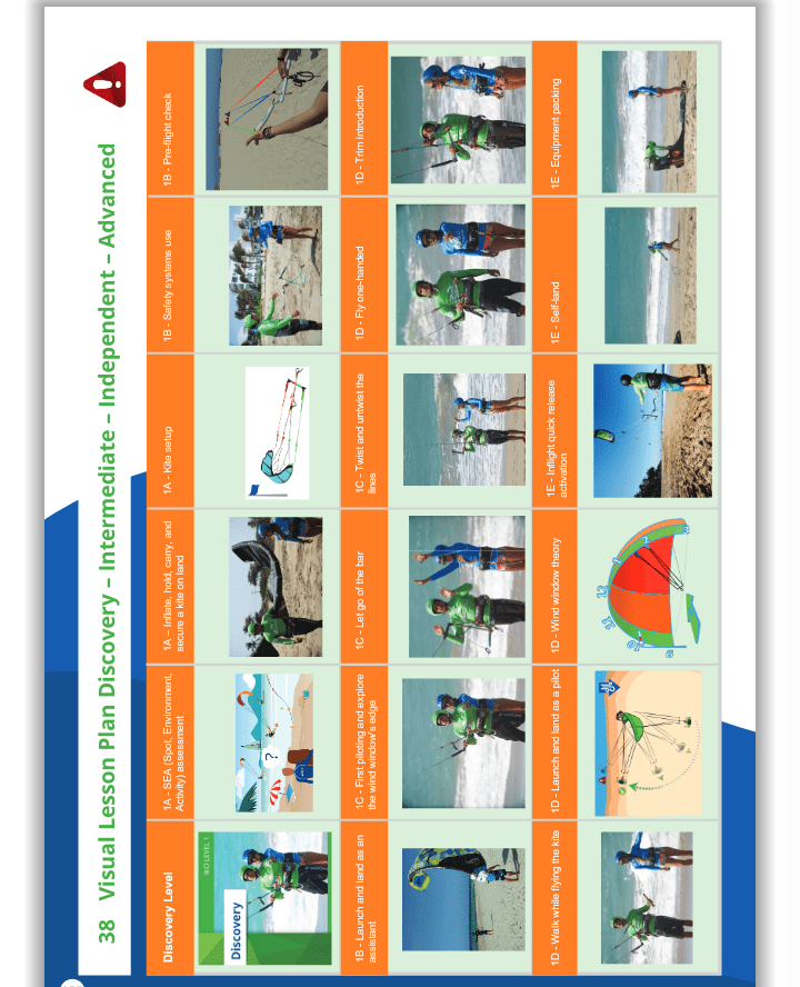 On shallow water, flying a 4 line kite, understanding how to set up a kite, launch and land successfully, understand how to handle the kite and move in and out of the power zone.