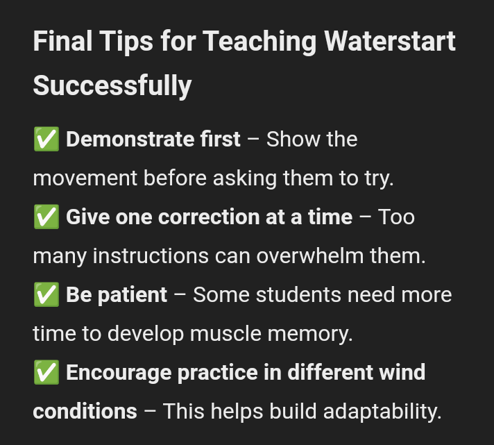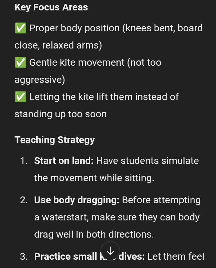 Understanding how to propel yourself through the water. This is called body dragging, you will be able to soft body drag and power body dragging upwind.