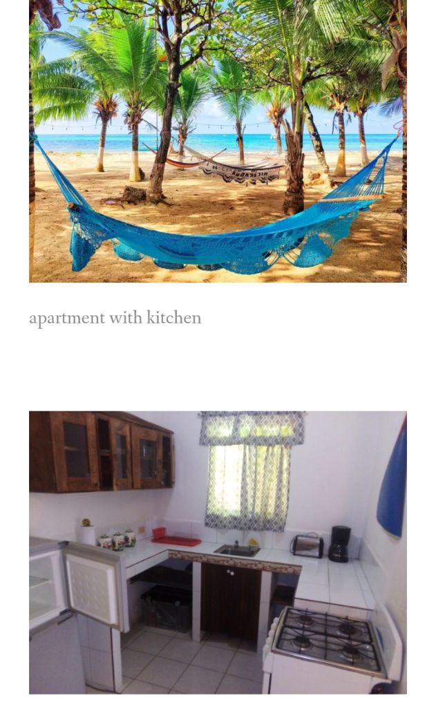Lulu rentals is a two story house, with garden in front of a beach with hamacas on Corn Island. We offer 6 rooms and 2 apartments, and have options to rent the full house for groups.