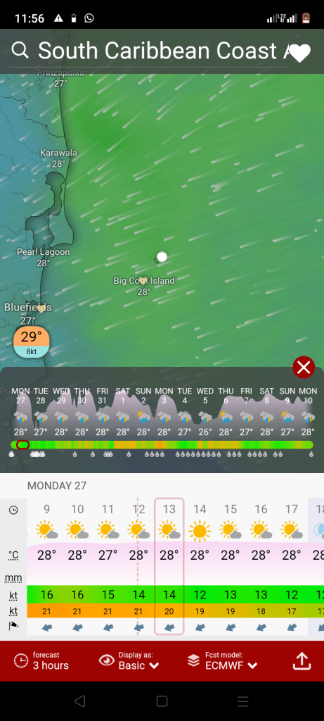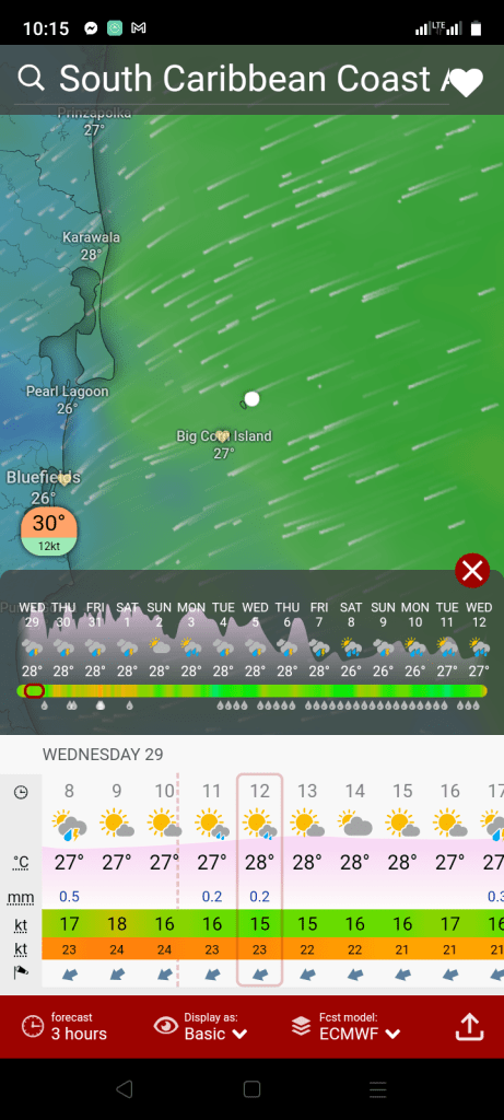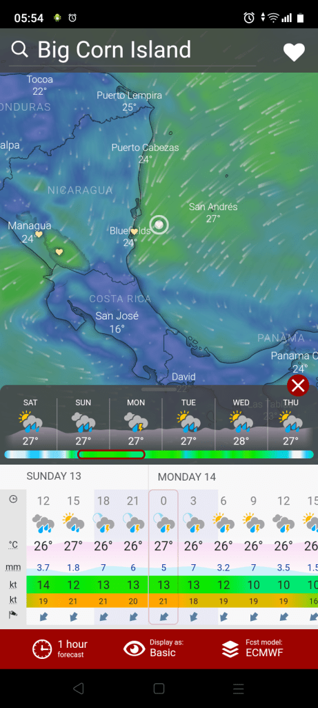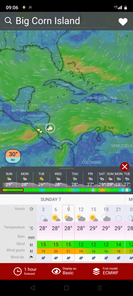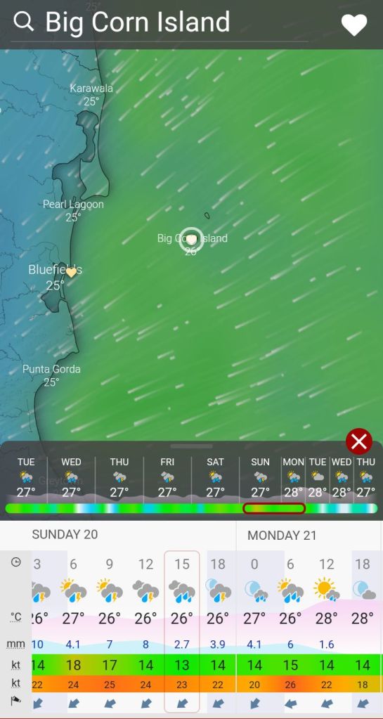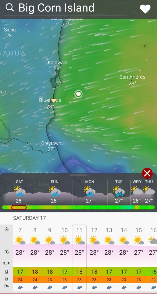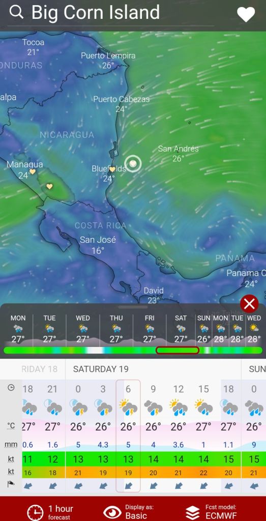 Wind forecast for corn island, Nicaragua