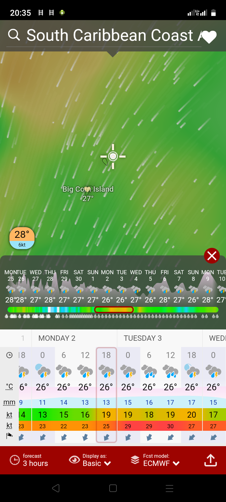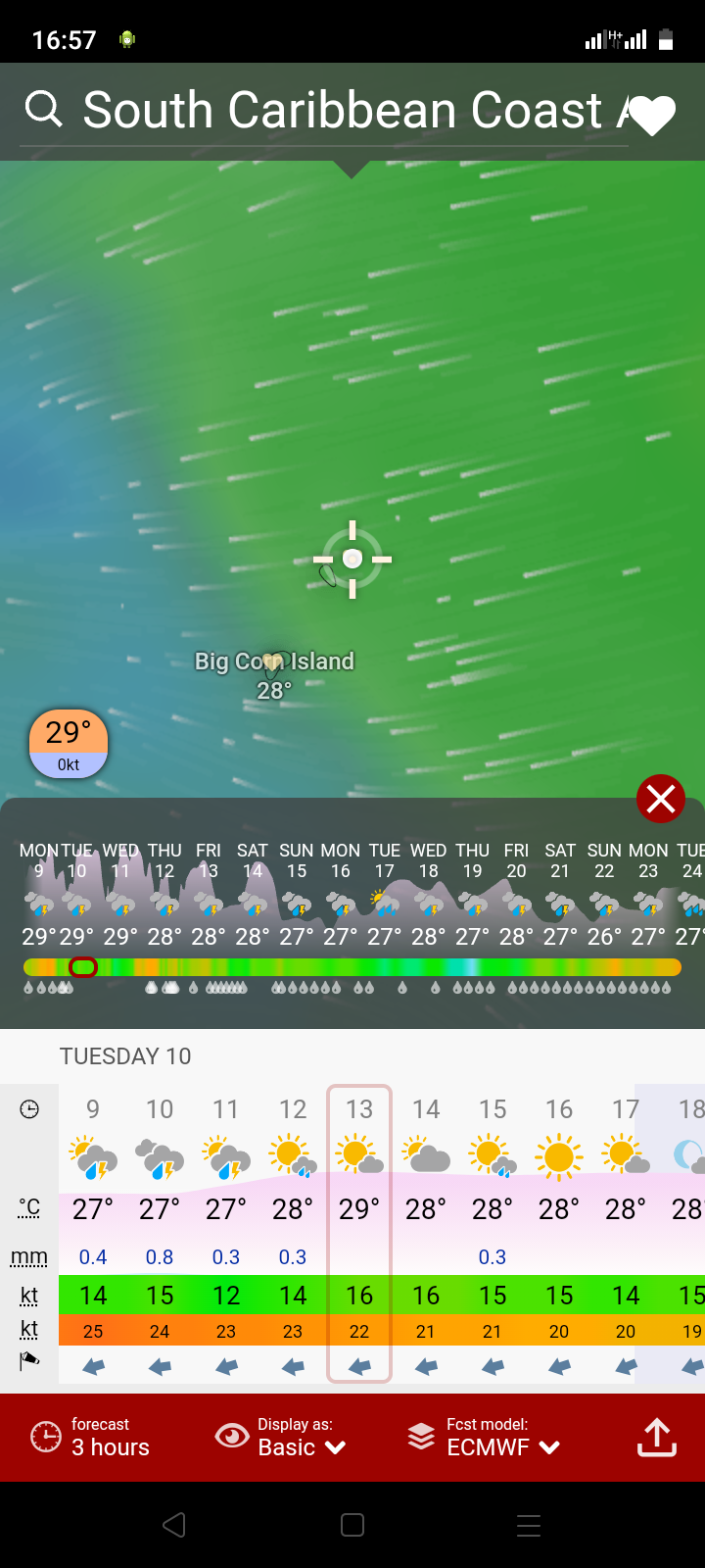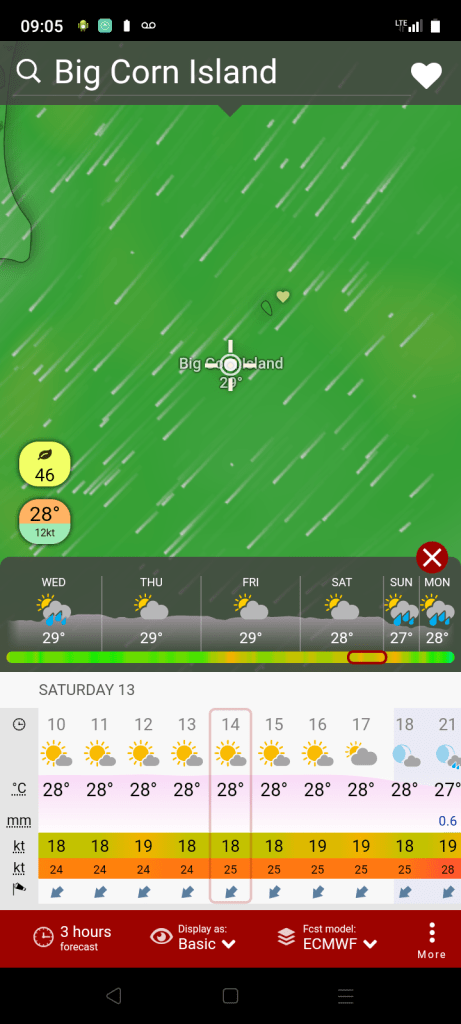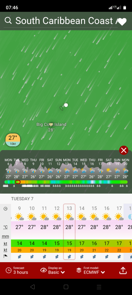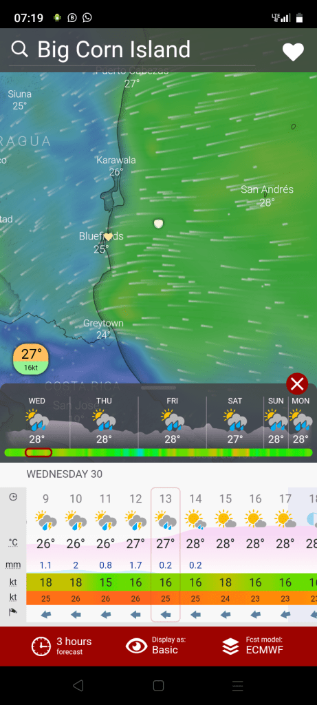 Wind forecast for corn island, Nicaragua
